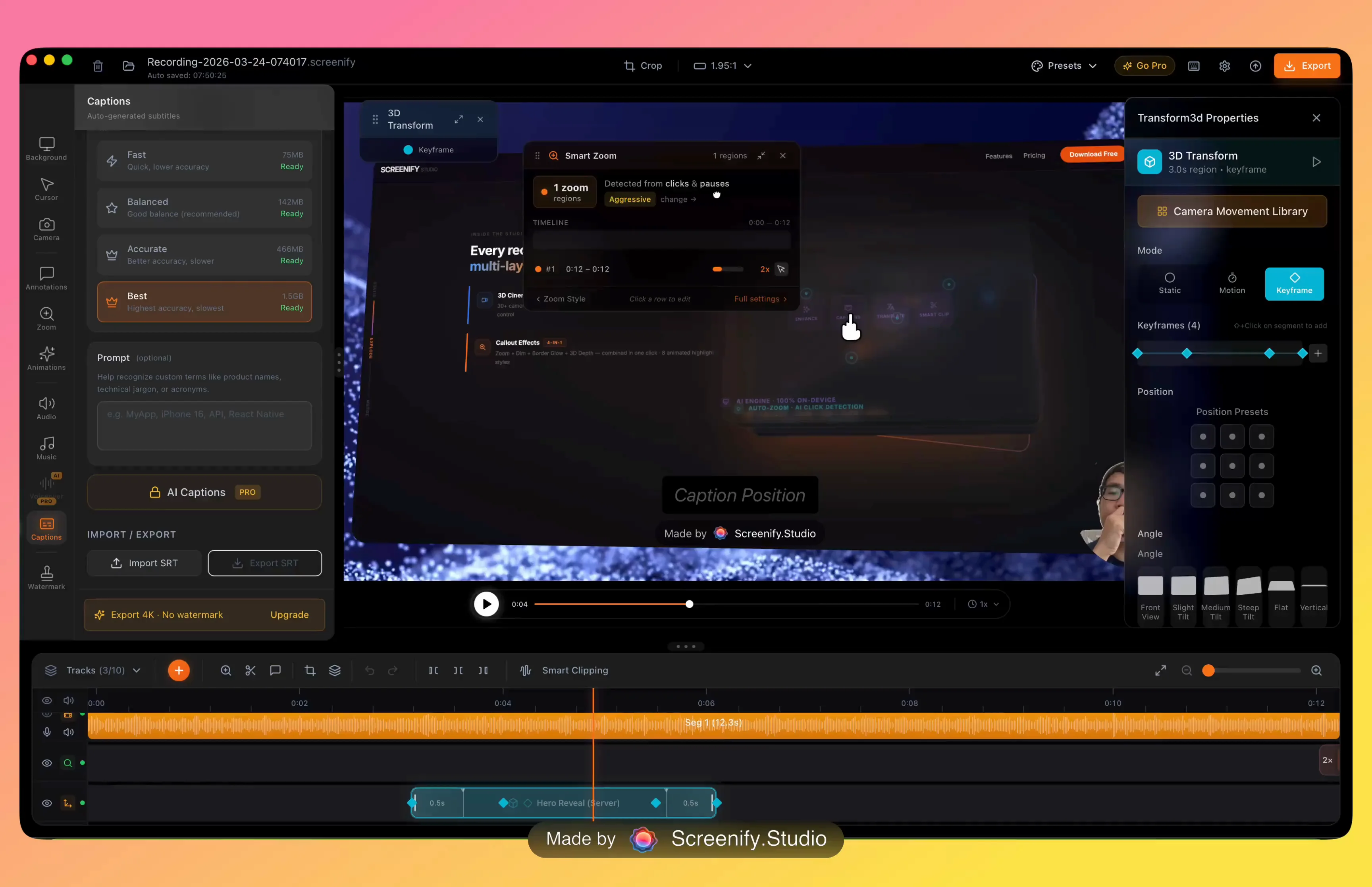 Download Screenify Studio and start creating today. Free forever, upgrade when ready.
