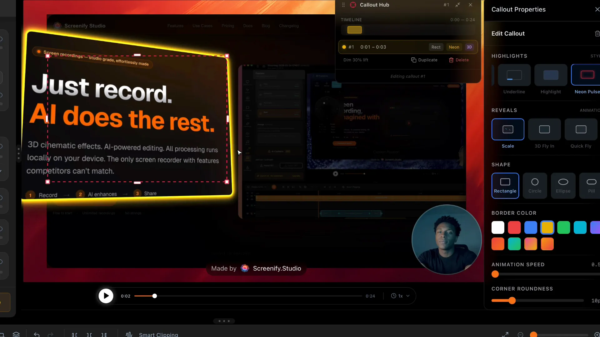 AI click & dwell detection, 24 callout styles + 8 callout effects