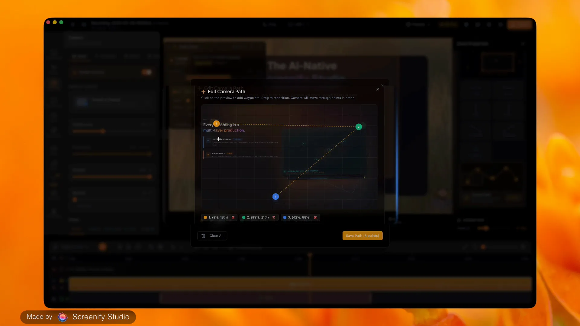 ExclusiveCustom camera paths with pan, zoom routes — professional movement on a timeline.